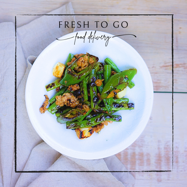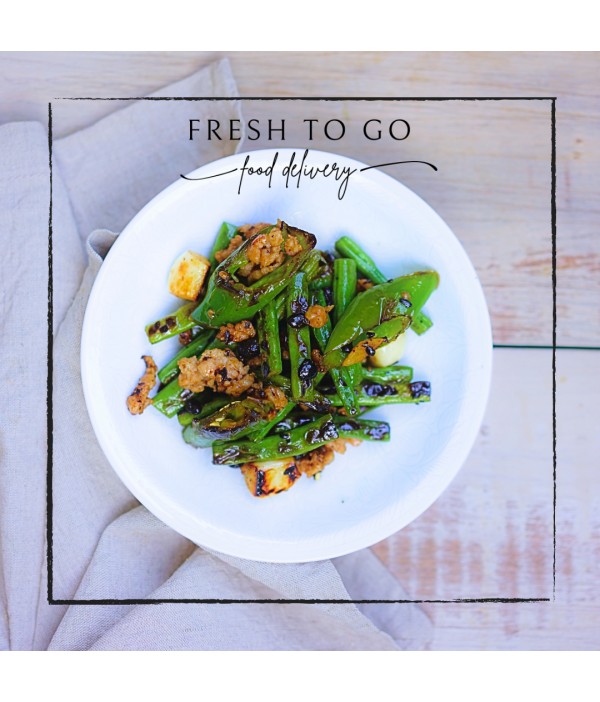 加入四季豆略炒, 加入少許水炒至軟身。